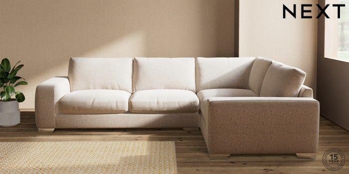 7.2.10 Houghton Deep Relaxed Sit Large Corner Sofa - Right Hand Multi Weave Mid Natural Large Square Angle - Chrome Metal | Made Click here to use our website with more accessibility support, for example screen readers