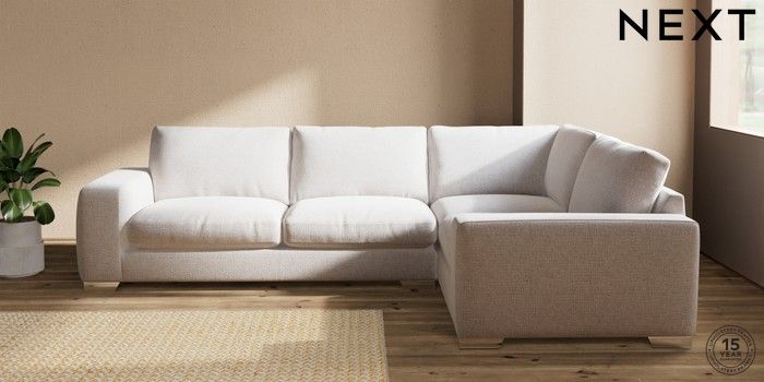 7.2.10 Houghton Deep Relaxed Sit Large Corner Sofa - Right Hand Multi Weave Oyster Large Square Angle - Chrome Metal | Made Click here to use our website with more accessibility support, for example screen readers
