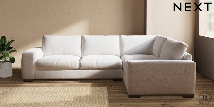7.2.10 Houghton Deep Relaxed Sit Large Corner Sofa - Right Hand Multi Weave Oyster Large Square Angle - Gunmetal | Made Click here to use our website with more accessibility support, for example screen readers
