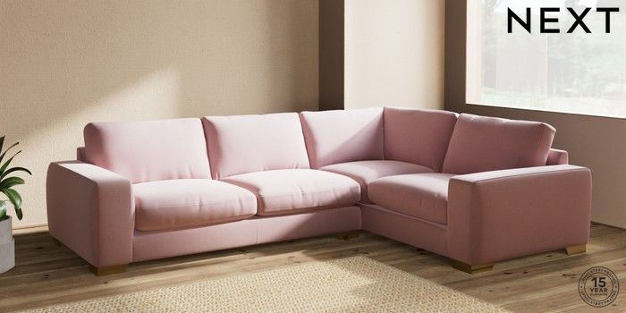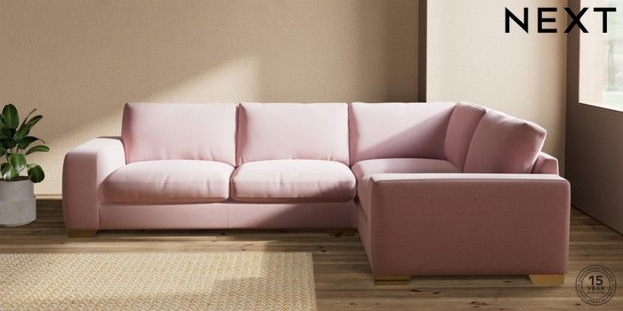 7.2.10 Houghton Deep Relaxed Sit Large Corner Sofa - Right Hand Natural Mix Light Rose Pink Large Square Angle - Brushed Brass | Made Click here to use our website with more accessibility support, for example screen readers