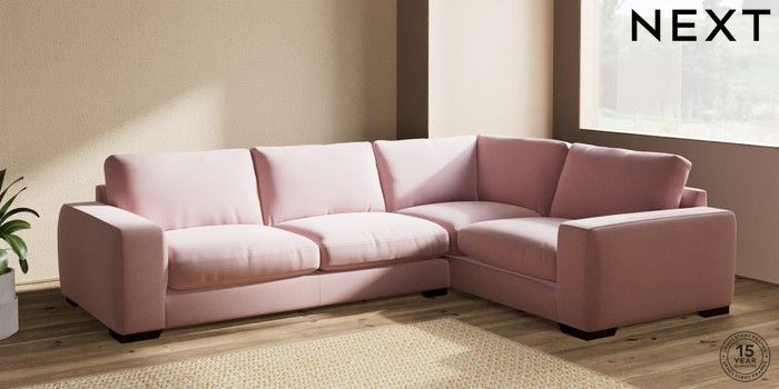 7.2.10 Houghton Deep Relaxed Sit Large Corner Sofa - Right Hand Natural Mix Light Rose Pink Large Square Angle - Dark | Made Click here to use our website with more accessibility support, for example screen readers