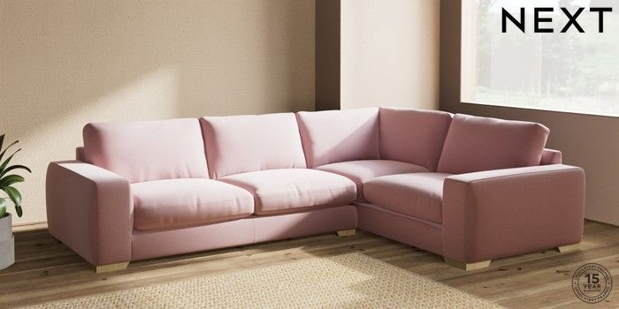 7.2.10 Houghton Deep Relaxed Sit Large Corner Sofa - Right Hand Natural Mix Light Rose Pink Large Square Angle - Light | Made Click here to use our website with more accessibility support, for example screen readers