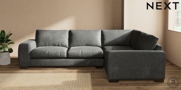 7.2.10 Houghton Deep Relaxed Sit Large Corner Sofa - Right Hand Plush Chenille Dark Grey Large Square Angle - Gunmetal | Made Click here to use our website with more accessibility support, for example screen readers