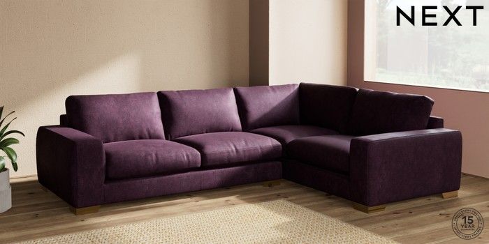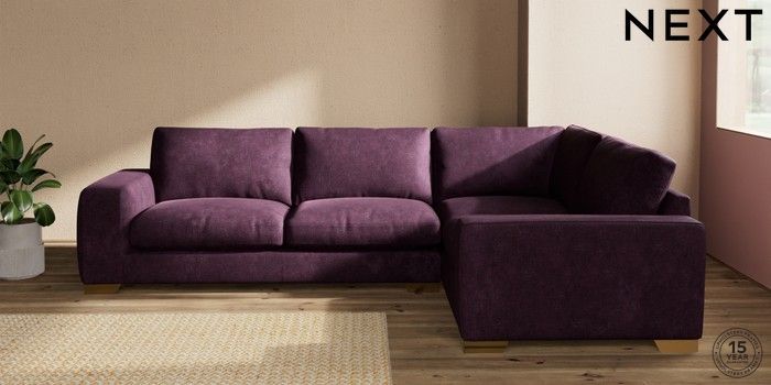 7.2.10 Houghton Deep Relaxed Sit Large Corner Sofa - Right Hand Plush Chenille Dark Plum Purple Large Square Angle - Brushed Brass | Made Click here to use our website with more accessibility support, for example screen readers