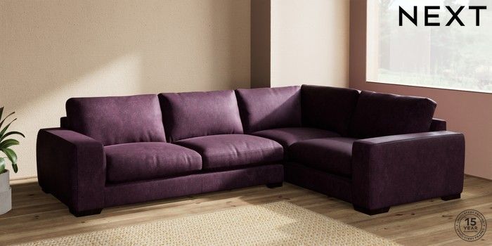 7.2.10 Houghton Deep Relaxed Sit Large Corner Sofa - Right Hand Plush Chenille Dark Plum Purple Large Square Angle - Dark | Made Click here to use our website with more accessibility support, for example screen readers
