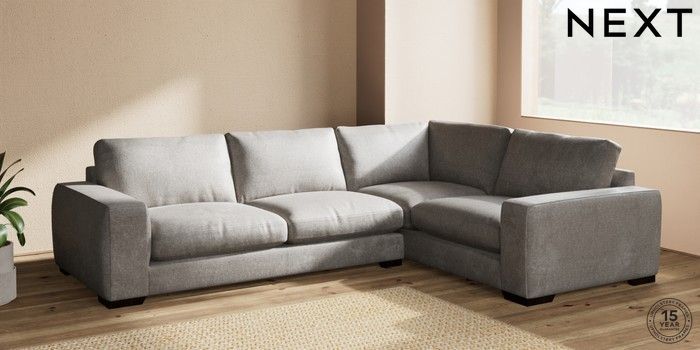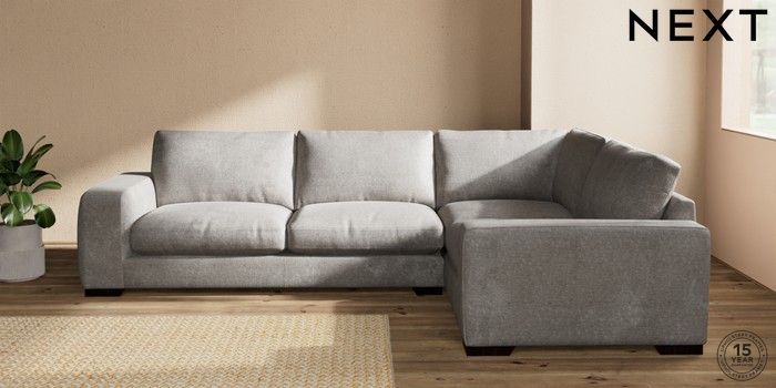 7.2.10 Houghton Deep Relaxed Sit Large Corner Sofa - Right Hand Plush Chenille Light Grey Large Square Angle - Dark | Made Click here to use our website with more accessibility support, for example screen readers