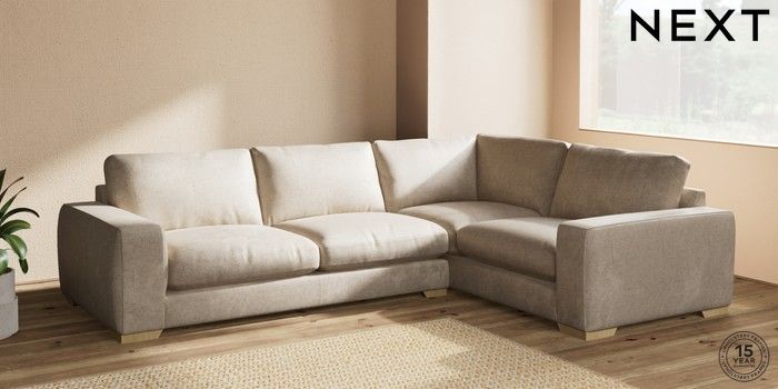 7.2.10 Houghton Deep Relaxed Sit Large Corner Sofa - Right Hand Plush Chenille Light Natural Large Square Angle - Light | Made Click here to use our website with more accessibility support, for example screen readers