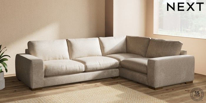 7.2.10 Houghton Deep Relaxed Sit Large Corner Sofa - Right Hand Plush Chenille Light Natural Large Square Angle - Mid | Made Click here to use our website with more accessibility support, for example screen readers