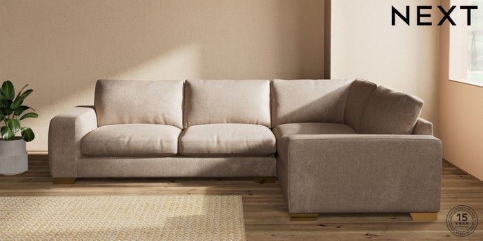 7.2.10 Houghton Deep Relaxed Sit Large Corner Sofa - Right Hand Plush Chenille Mid Natural Large Square Angle - Brushed Brass | Made Click here to use our website with more accessibility support, for example screen readers