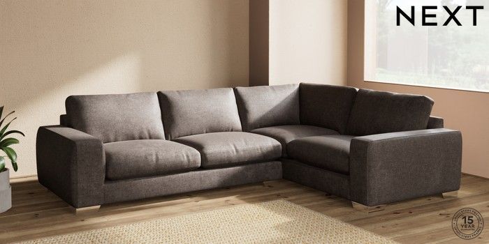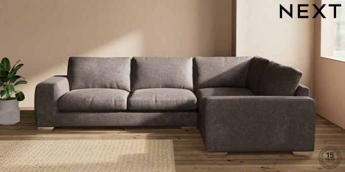 7.2.10 Houghton Deep Relaxed Sit Large Corner Sofa - Right Hand Plush Chenille Mink Brown Large Square Angle - Chrome Metal | Made Click here to use our website with more accessibility support, for example screen readers