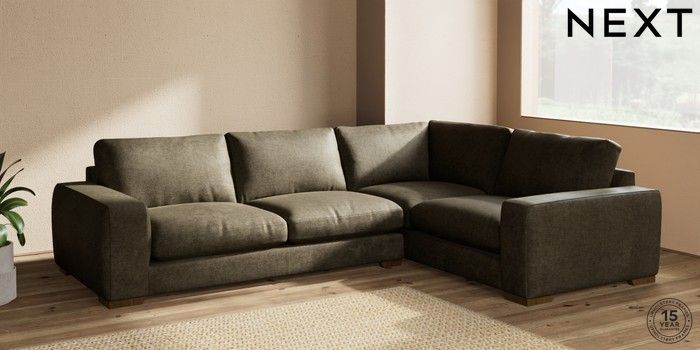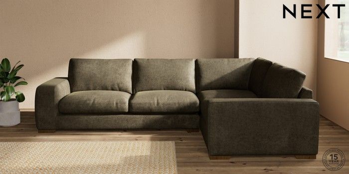 7.2.10 Houghton Deep Relaxed Sit Large Corner Sofa - Right Hand Plush Chenille Moss Green Large Square Angle - Mid | Made Click here to use our website with more accessibility support, for example screen readers