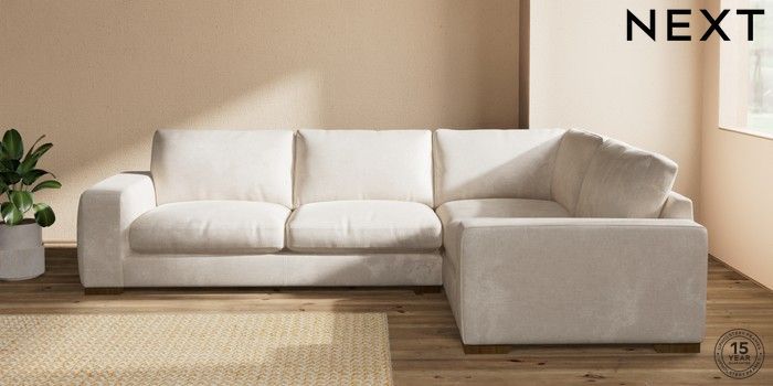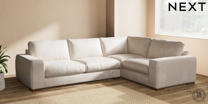 7.2.10 Houghton Deep Relaxed Sit Large Corner Sofa - Right Hand Plush Chenille Oyster Large Square Angle - Mid | Made Click here to use our website with more accessibility support, for example screen readers