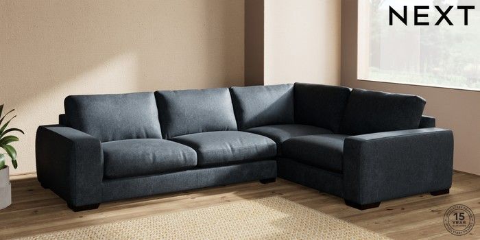 7.2.10 Houghton Deep Relaxed Sit Large Corner Sofa - Right Hand Plush Chenille Slate Blue Large Square Angle - Dark | Made Click here to use our website with more accessibility support, for example screen readers