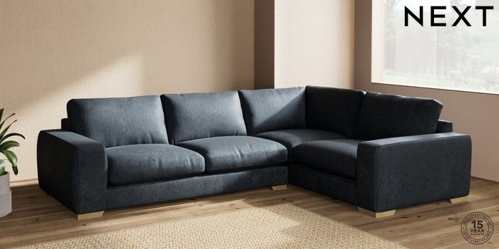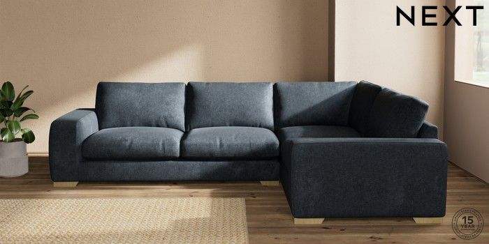 7.2.10 Houghton Deep Relaxed Sit Large Corner Sofa - Right Hand Plush Chenille Slate Blue Large Square Angle - Light | Made Click here to use our website with more accessibility support, for example screen readers