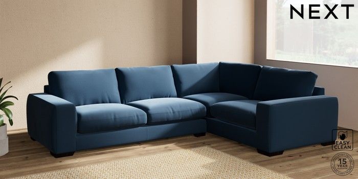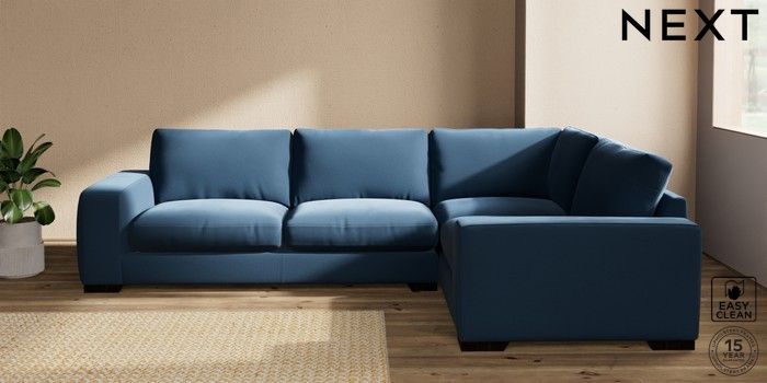 7.2.10 Houghton Deep Relaxed Sit Large Corner Sofa - Right Hand Plush Velvet Easy Clean Airforce Blue Large Square Angle - Dark | Made Click here to use our website with more accessibility support, for example screen readers