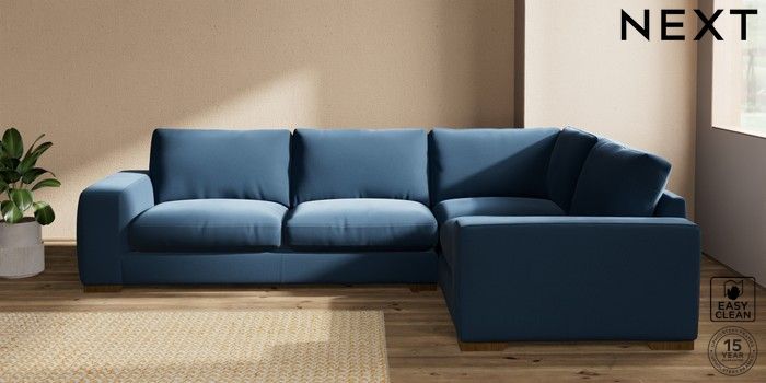 7.2.10 Houghton Deep Relaxed Sit Large Corner Sofa - Right Hand Plush Velvet Easy Clean Airforce Blue Large Square Angle - Mid | Made Click here to use our website with more accessibility support, for example screen readers
