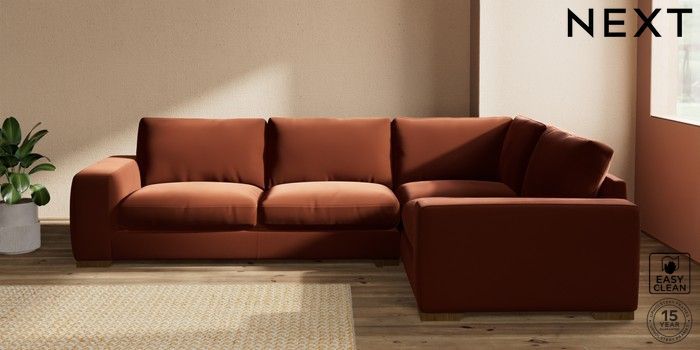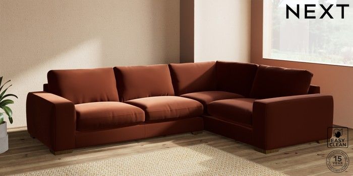 7.2.10 Houghton Deep Relaxed Sit Large Corner Sofa - Right Hand Plush Velvet Easy Clean Ginger Orange Large Square Angle - Mid | Made Click here to use our website with more accessibility support, for example screen readers
