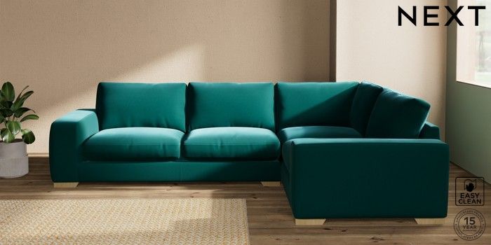 7.2.10 Houghton Deep Relaxed Sit Large Corner Sofa - Right Hand Plush Velvet Easy Clean Juniper Green Large Square Angle - Light | Made Click here to use our website with more accessibility support, for example screen readers