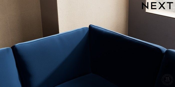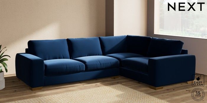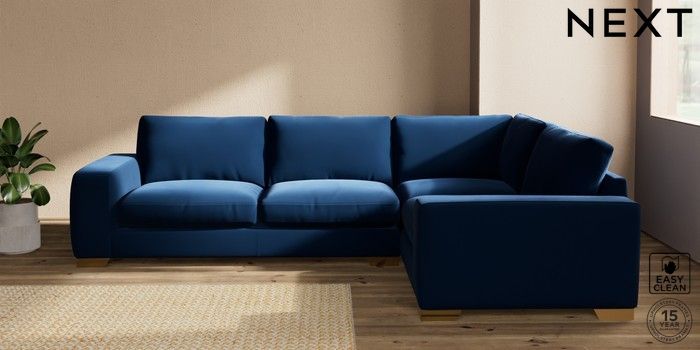 7.2.10 Houghton Deep Relaxed Sit Large Corner Sofa - Right Hand Plush Velvet Easy Clean Navy Blue Large Square Angle - Brushed Brass | Made Click here to use our website with more accessibility support, for example screen readers