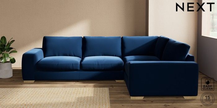 7.2.10 Houghton Deep Relaxed Sit Large Corner Sofa - Right Hand Plush Velvet Easy Clean Navy Blue Large Square Angle - Light | Made Click here to use our website with more accessibility support, for example screen readers