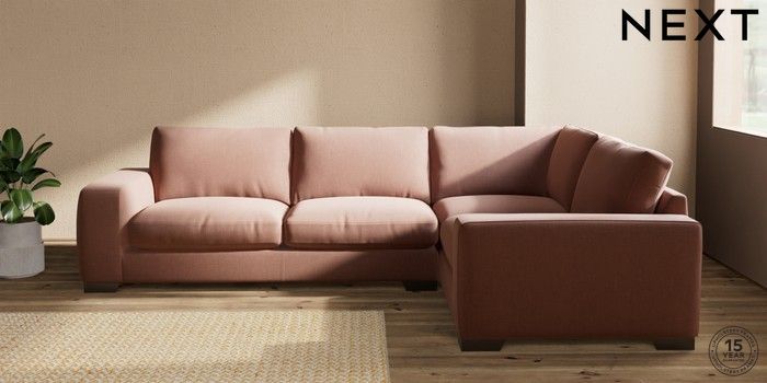 7.2.10 Houghton Deep Relaxed Sit Large Corner Sofa - Right Hand Relaxed Linen Look Light Rust Brown Large Square Angle - Gunmetal | Made Click here to use our website with more accessibility support, for example screen readers