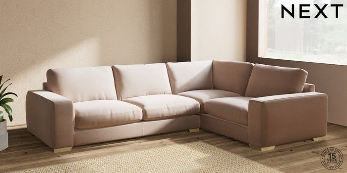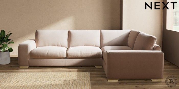7.2.10 Houghton Deep Relaxed Sit Large Corner Sofa - Right Hand Relaxed Linen Look Mid Natural Large Square Angle - Light | Made Click here to use our website with more accessibility support, for example screen readers