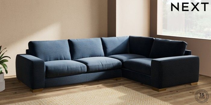 7.2.10 Houghton Deep Relaxed Sit Large Corner Sofa - Right Hand Ripple Chenille Dark Blue Large Square Angle - Brushed Brass | Made Click here to use our website with more accessibility support, for example screen readers