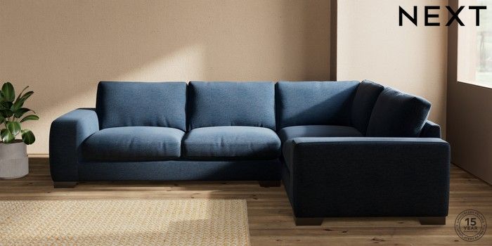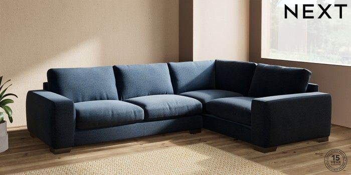 7.2.10 Houghton Deep Relaxed Sit Large Corner Sofa - Right Hand Ripple Chenille Dark Blue Large Square Angle - Gunmetal | Made Click here to use our website with more accessibility support, for example screen readers