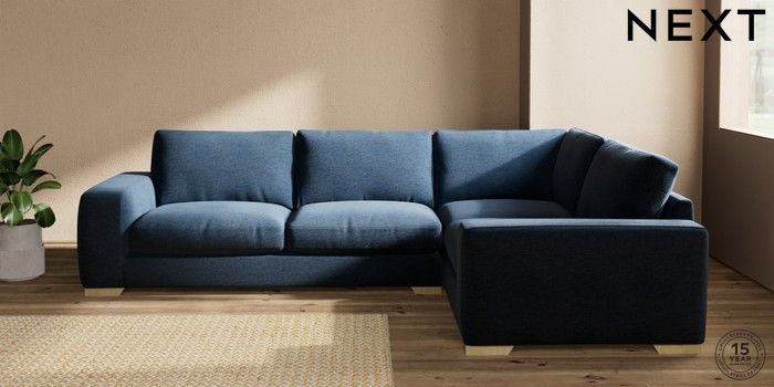 7.2.10 Houghton Deep Relaxed Sit Large Corner Sofa - Right Hand Ripple Chenille Dark Blue Large Square Angle - Light | Made Click here to use our website with more accessibility support, for example screen readers