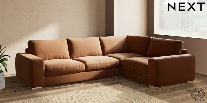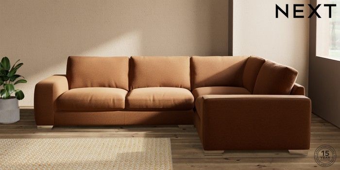 7.2.10 Houghton Deep Relaxed Sit Large Corner Sofa - Right Hand Ripple Chenille Mid Rust Brown Large Square Angle - Chrome Metal | Made Click here to use our website with more accessibility support, for example screen readers