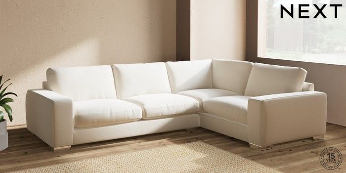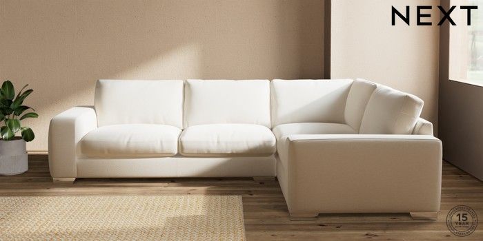 7.2.10 Houghton Deep Relaxed Sit Large Corner Sofa - Right Hand Ripple Chenille Oyster Large Square Angle - Chrome Metal | Made Click here to use our website with more accessibility support, for example screen readers
