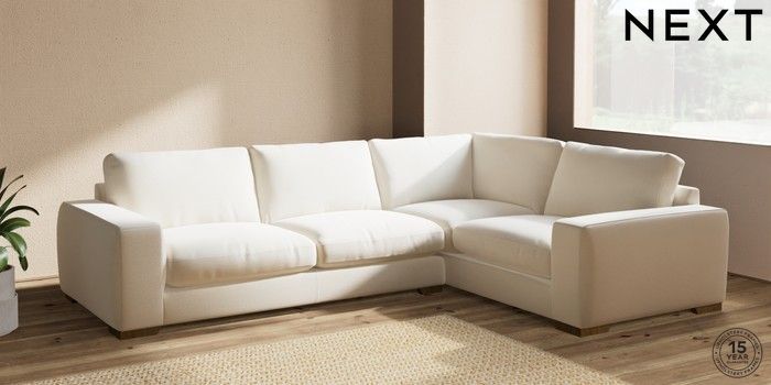 7.2.10 Houghton Deep Relaxed Sit Large Corner Sofa - Right Hand Ripple Chenille Oyster Large Square Angle - Mid | Made Click here to use our website with more accessibility support, for example screen readers