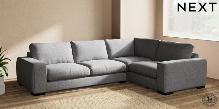 7.2.10 Houghton Deep Relaxed Sit Large Corner Sofa - Right Hand Studio Chenille Mid Grey Large Square Angle - Dark | Made Click here to use our website with more accessibility support, for example screen readers