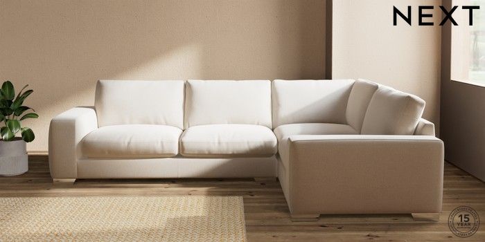 7.2.10 Houghton Deep Relaxed Sit Large Corner Sofa - Right Hand Studio Chenille Oyster Large Square Angle - Chrome Metal | Made Click here to use our website with more accessibility support, for example screen readers