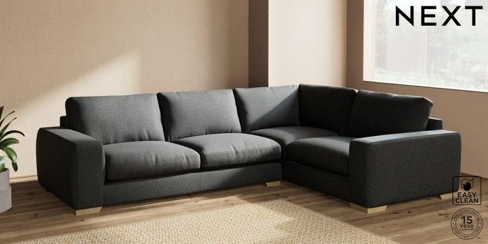 7.2.10 Houghton Deep Relaxed Sit Large Corner Sofa - Right Hand Tweedy Blend Easy Clean Charcoal Grey Large Square Angle - Light | Made Click here to use our website with more accessibility support, for example screen readers