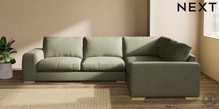 7.2.10 Houghton Deep Relaxed Sit Large Corner Sofa - Right Hand Tweedy Chenille Mid Moss Green Large Square Angle - Light | Made Click here to use our website with more accessibility support, for example screen readers