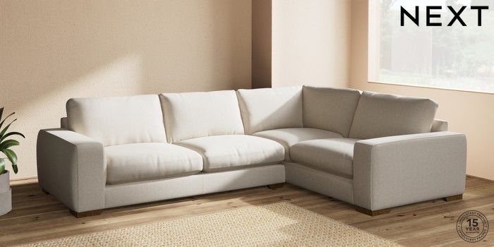 7.2.10 Houghton Deep Relaxed Sit Large Corner Sofa - Right Hand Tweedy Chenille Oyster Large Square Angle - Mid | Made Click here to use our website with more accessibility support, for example screen readers