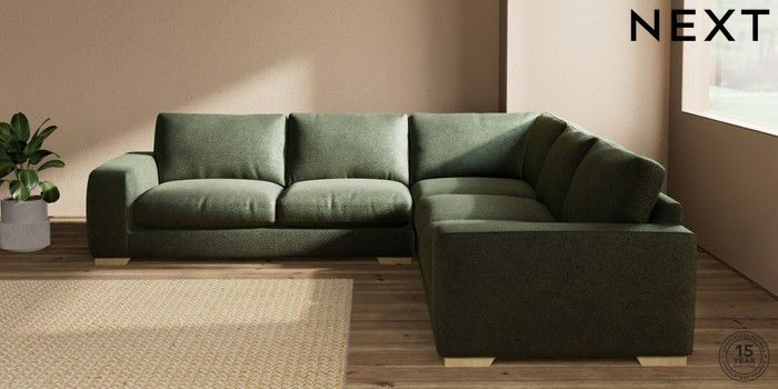 7.2.10 Houghton Deep Relaxed Sit Large Corner Sofa - Universal Boucle Chenille Dark Moss Green Large Square Angle - Light | Made Click here to use our website with more accessibility support, for example screen readers