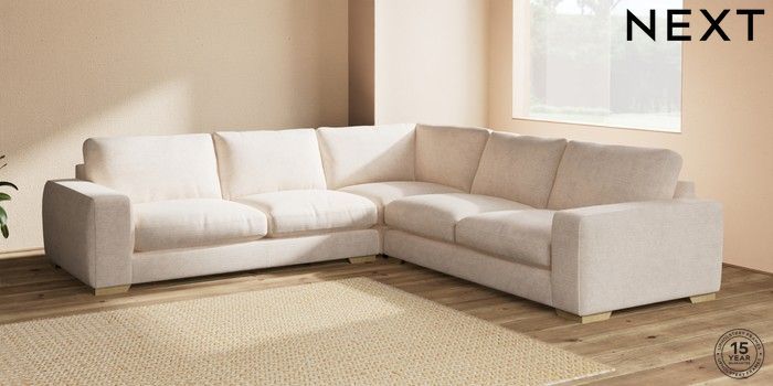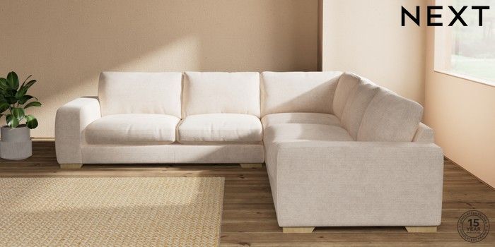 7.2.10 Houghton Deep Relaxed Sit Large Corner Sofa - Universal Boucle Chenille Oyster Large Square Angle - Light | Made Click here to use our website with more accessibility support, for example screen readers