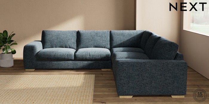 7.2.10 Houghton Deep Relaxed Sit Large Corner Sofa - Universal Chunky Chenille Dark Navy Blue Large Square Angle - Light | Made Click here to use our website with more accessibility support, for example screen readers