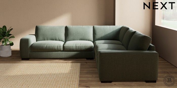 7.2.10 Houghton Deep Relaxed Sit Large Corner Sofa - Universal Chunky Texture Mid Forest Green Large Square Angle - Dark | Made Click here to use our website with more accessibility support, for example screen readers