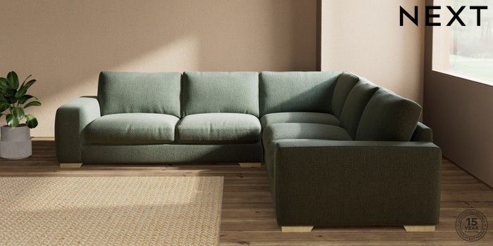 7.2.10 Houghton Deep Relaxed Sit Large Corner Sofa - Universal Chunky Texture Mid Forest Green Large Square Angle - Light | Made Click here to use our website with more accessibility support, for example screen readers