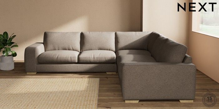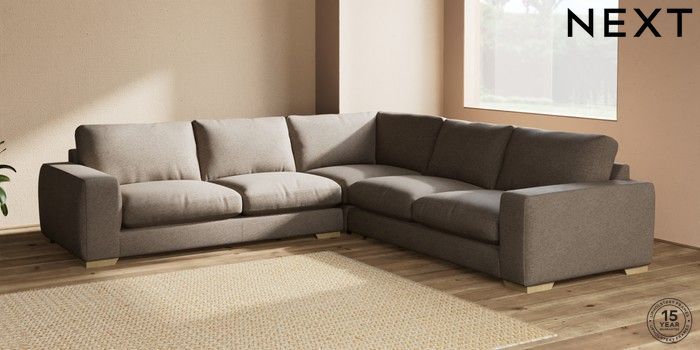 7.2.10 Houghton Deep Relaxed Sit Large Corner Sofa - Universal Chunky Weave Dark Natural Large Square Angle - Light | Made Click here to use our website with more accessibility support, for example screen readers