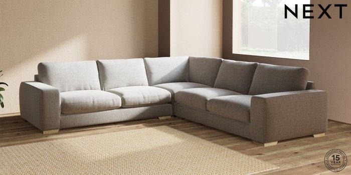 7.2.10 Houghton Deep Relaxed Sit Large Corner Sofa - Universal Chunky Weave Dove Grey Large Square Angle - Light | Made Click here to use our website with more accessibility support, for example screen readers