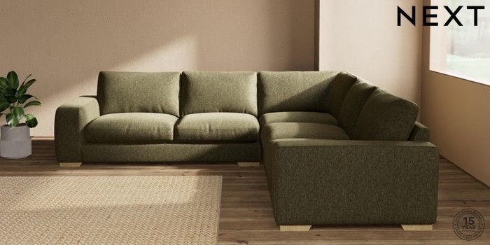 7.2.10 Houghton Deep Relaxed Sit Large Corner Sofa - Universal Cotswold Chenille Dark Green Large Square Angle - Light | Made Click here to use our website with more accessibility support, for example screen readers