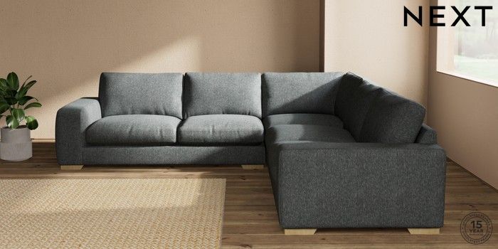 7.2.10 Houghton Deep Relaxed Sit Large Corner Sofa - Universal Cotswold Chenille Dark Grey Large Square Angle - Light | Made Click here to use our website with more accessibility support, for example screen readers