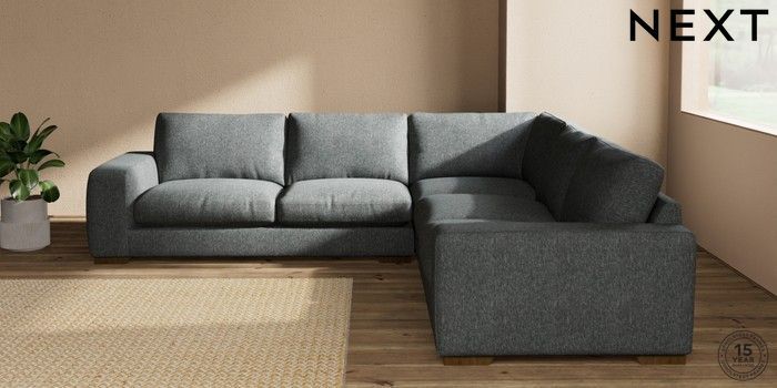 7.2.10 Houghton Deep Relaxed Sit Large Corner Sofa - Universal Cotswold Chenille Dark Grey Large Square Angle - Mid | Made Click here to use our website with more accessibility support, for example screen readers