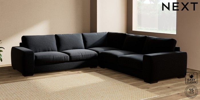 7.2.10 Houghton Deep Relaxed Sit Large Corner Sofa - Universal Fine Chenille Easy Clean Black Large Square Angle - Dark | Made Click here to use our website with more accessibility support, for example screen readers