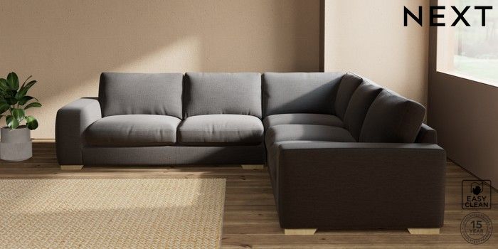 7.2.10 Houghton Deep Relaxed Sit Large Corner Sofa - Universal Fine Chenille Easy Clean Dark Smoke Grey Large Square Angle - Light | Made Click here to use our website with more accessibility support, for example screen readers