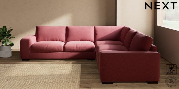 7.2.10 Houghton Deep Relaxed Sit Large Corner Sofa - Universal Fine Chenille Easy Clean Mid Pink Large Square Angle - Dark | Made Click here to use our website with more accessibility support, for example screen readers